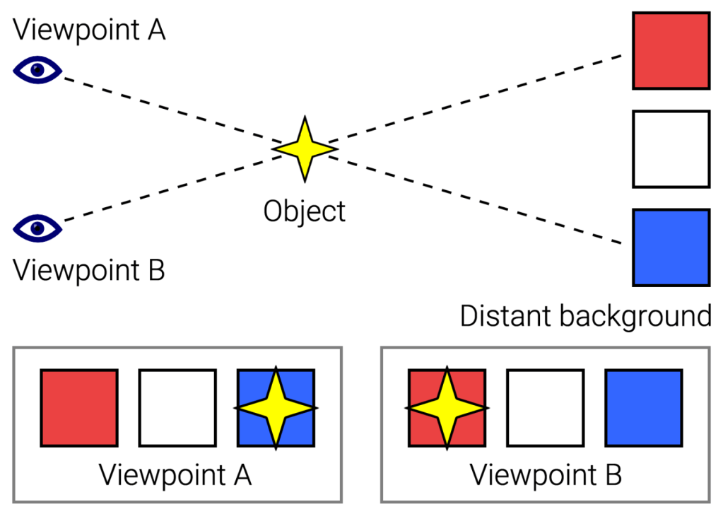 Now, extend your arm so your thumb gets further away. You should see that parallax shift get smaller and smaller as you do.